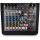 Mixer Audio compatto 6 canali con lettore su USB e lettore su PC. Connettività Bluetooth e multieffetto DSP con 16 effetti. I 4 canali microfonici dispongono l'alimentazione phantom da +48V, Gain per il guadagno delle dinamica, un EQ a 3 bande, un regolatore di effetto (disponibile su ogni canale) e un regolatore di livello.